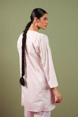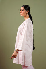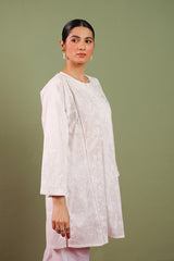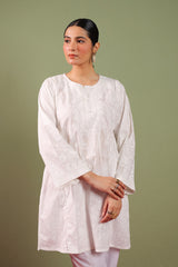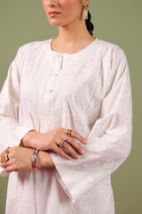 A paneled white-on-white kurta with a round neckline and buttoned front placket. Delicate embroidery graces the bodice and is mirrored on the sleeve hems for a cohesive finish. Pairs effortlessly with any Generation bottoms for a refined everyday look.