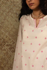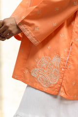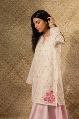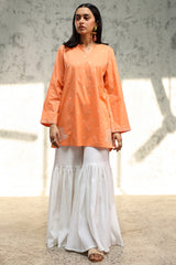 Embroidered paneled kurti designed in a relaxed silhouette, detailed with a round neckline and V-slit, and finished with fine embroidery for a refined, understated look. Style it with your preferred Generation bottoms.
