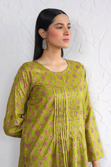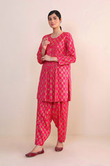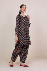 Printed shirt with stitch pleat details. Paired with matching classic fit shalwar.