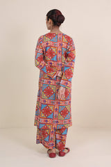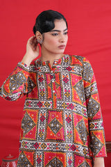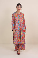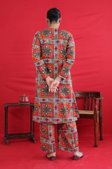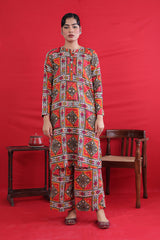 Printed shirt with button details on placket. Paired with matching printed flared trousers.