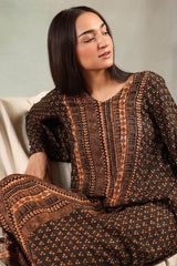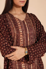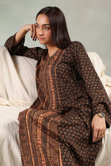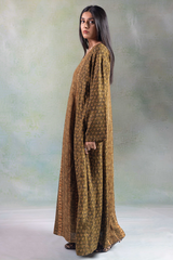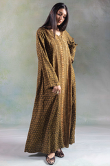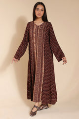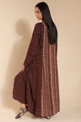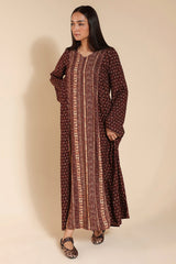 A classic-fit long printed A-line dress with a round neckline and V-slit.