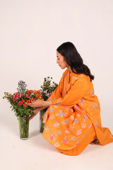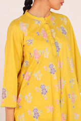 A classic-fit block-printed kurta featuring a band neckline, accentuated with contrast stitching and button detailing on the front placket. Adorned with all-over floral motifs, it pairs with a matching classic-fit shalwar, finished with subtle stitching on the ankle hem.