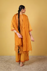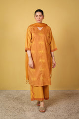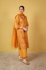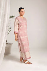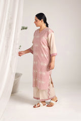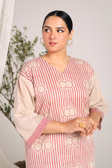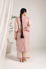 A relaxed-fit block-printed kurta with a V-neckline. The subtle block print adds life to the kurta, paired perfectly with classic block-printed culottes for a chic look.