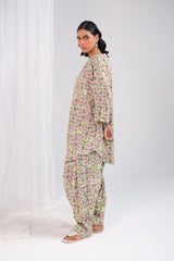 A classic-fit printed shirt with a shawl-collar neckline and a round hem, paired with a matching printed classic-fit shalwar. The set combines comfort and style, from subtle to statement.