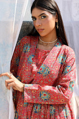 Gold printed long front-open Jama, adorned with tassel detailing and soft gathers around the empire waist that create a graceful, flowing silhouette. Layered over a classic-fit gold printed sleeveless shirt with a square neckline, paired with matching printed culottes to complete the coordinated ensemble.