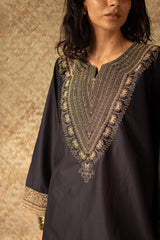 Rich embroidered kurti designed in a relaxed silhouette, elevated with an ornate antique-gold embroidered neckline and finished with statement sleeve borders. Style it with your preferred Generation bottoms.