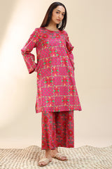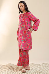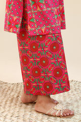 Classic-fit printed shirt with a round neckline and button detailing along the front placket, featuring side pockets for added comfort and ease. Paired with coordinated printed culottes.