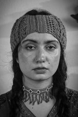 Hand-crocheted headband made with soft, textured yarn, offering a snug and cozy fit for winter days. Its warm, handcrafted feel adds both comfort and style to your everyday looks.