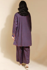 A classic-fit printed shirt with a round neckline and V-slit, featuring drop shoulders and cuffed sleeves. Paired with matching printed culottes.