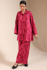 A classic-fit co-ord set featuring a button-down shirt with a collared neckline and drop shoulders. Paired with matching culottes for a graceful look.
