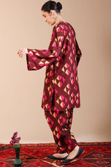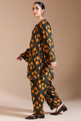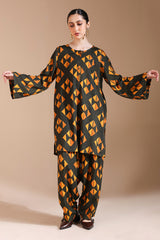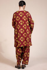 Classic-fit printed shirt with a buttoned front placket and side pockets for effortless style and functionality. Paired with a matching classic-fit printed shalwar.