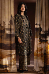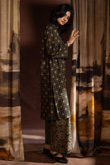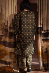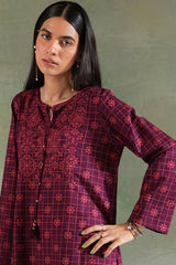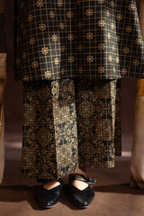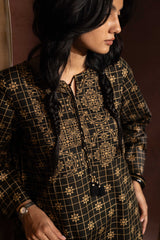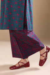 A classic-fit printed shirt with a round neckline and V-slit, adorned with tassel detailing. Paired with printed culottes for a coordinated look.