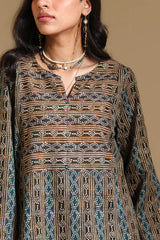 A classic-fit A-line printed shirt with a round neckline and V-slit, adorned with delicate embellishment. Paired with a matching printed classic-fit shalwar for a fresh and sophisticated look.