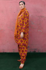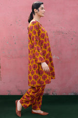 A classic-fit printed shirt with a round neckline and V-slit. Paired with a matching printed classic-fit shalwar for a coordinated, elegant look.