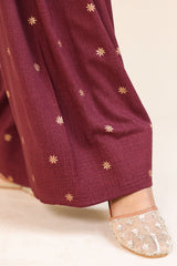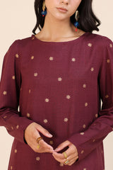 Classic-fit printed shirt with a round neckline and puff sleeves. Paired with a matching farshi shalwar featuring delicate stitching detail along the ankle hemline.