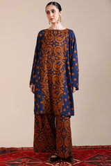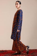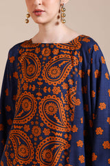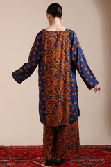 Classic-fit paneled printed shirt with a round neckline, paired with matching printed culottes.