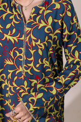 Classic-fit printed shirt adorned with delicate embroidered detailing on the neckline and sleeve hems. Paired with matching printed culottes.