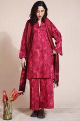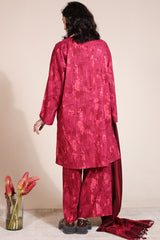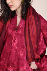 Classic-fit paneled printed shirt with a round neckline and V-slit, adorned with tassel detailing. Paired with matching culottes.