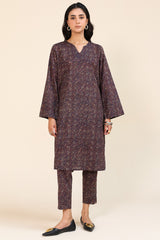 Classic-fit printed shirt with a round neckline and V-slit, featuring a sleeve-hem slit for a subtle, refined touch. Designed with a round hem for an easy fall. Paired with matching printed straight-fit trousers.