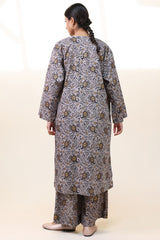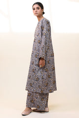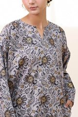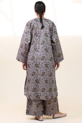 Gold-printed classic-fit shirt with a round neckline and V-slit, designed with drop shoulders and side pockets for ease and functionality. Paired with matching printed culottes.