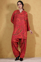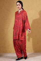 Classic-fit printed shirt designed with a round neckline and a subtle V-slit. Paired with a matching printed classic-fit shalwar.