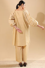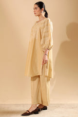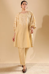 Embroidered relaxed boxy-fit shirt with a round neckline and puff sleeves, finished with cinched hems. Designed with a rounded shirt hem. Paired with straight-fit trousers for a balanced, contemporary look.