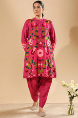 Embroidered classic-fit kurta with a low band neckline with a buttoned front placket. Thoughtfully detailed embroidery enhances the design. Paired with a pegged shalwar for a refined, contemporary silhouette.