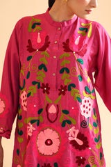 Embroidered classic-fit kurta with a low band neckline with a buttoned front placket. Thoughtfully detailed embroidery enhances the design. Paired with a pegged shalwar for a refined, contemporary silhouette.
