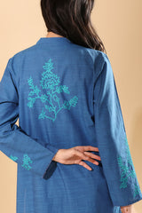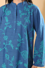 Embroidered classic-fit shirt with a low band round neckline, detailed with delicate bead embellishments along the sleeve hems. Paired with classic straight-fit trousers.
