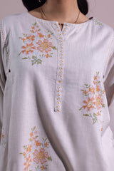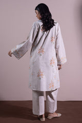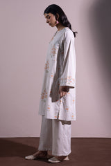 Embroidered paneled kurta with an overlap placket, adorned with delicate stitching for a refined finish. Paired with culottes featuring subtle stitching detail along the ankle hemline.