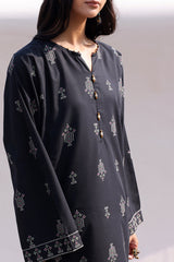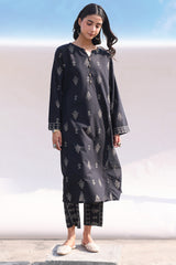 Jacquard classic-fit paneled shirt with a round neckline and V-slit, adorned with bead embellishment. Paired with classic straight-fit jacquard trousers.
