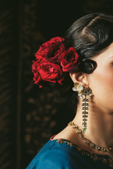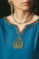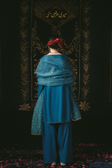 A luxurious gold-speckled base classic-fit shirt, detailed with delicate embroidery along the neckline and sleeves. Paired with a classic farshi shalwar and comes with an inner for added comfort. Styled with a lurex organza dupatta, finished with delicately scalloped edges.