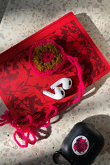 A hand-crochet case, ideal for keeping jewelry, coins, airpods or other small essentials.