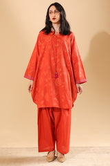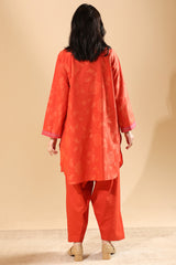Jacquard classic-fit paneled shirt with a round neckline and a subtle V-slit, adorned with tassel detailing. Jacquard borders accent the sleeve hems, while a rounded shirt hem completes the silhouette. Paired with a classic khula poncha shalwar.