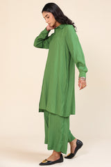 Classic-fit shirt featuring a collar neckline and cuffed sleeves. Paired with matching culottes for an effortlessly polished look.