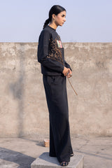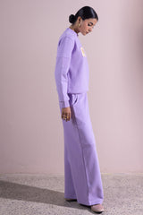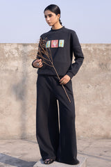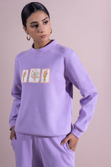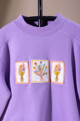 A cozy, comfy sweat set featuring a soft, relaxed-fit sweatshirt adorned with embroidered floral patches across the front. Designed with a clean mock neckline and raglan sleeves for a modern, easygoing look. Paired with sweatpants for comfort and everyday ease.