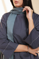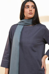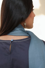 Classic short shirt with a round neckline with subtle stitching details on the neckline and sleeve hems, and a keyhole design at the back. Paired with printed culottes for a modern, effortless look.