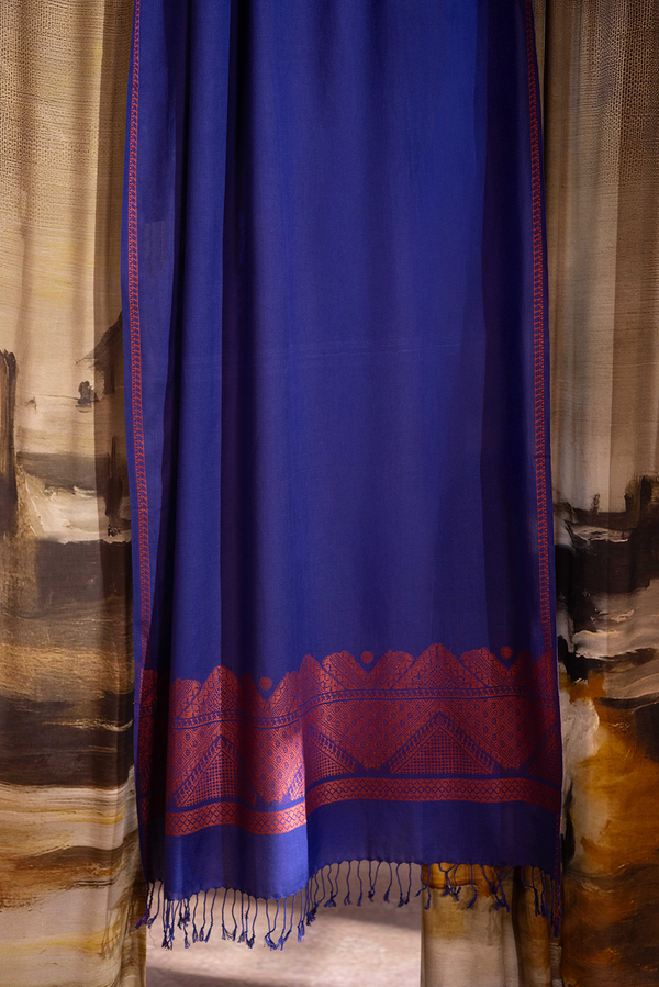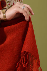 Textured woven shawl adorned with loose tassels along the edges for a touch of rustic charm.