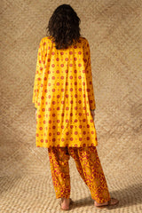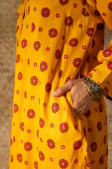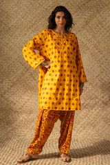 Printed classic-fit shirt with a round neckline, adorned with delicate stitching along the placket and sleeve hems. Paired with coordinated printed classic-fit shalwar.
