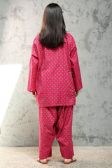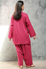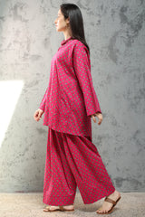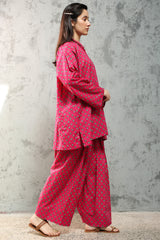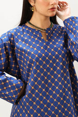 Relaxed-fit paneled printed kurta with a round neckline and V-slit. Designed with drop shoulders for an easy, fluid drape. Paired with a matching printed farshi shalwar.