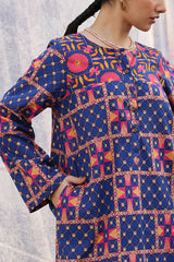 Classic-fit printed shirt with a round neckline and button detailing along the front placket, featuring side pockets for added comfort and ease. Paired with coordinated printed culottes.