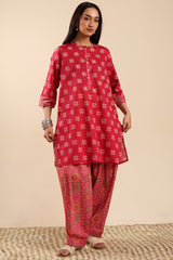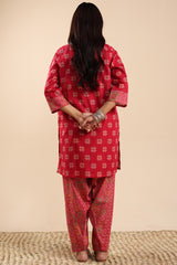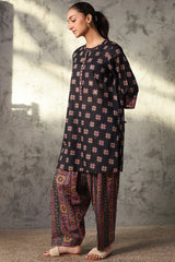 Classic-fit printed shirt with a low band neckline and a buttoned front placket. Paired with a coordinated printed classic-fit shalwar.