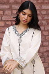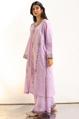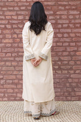 Hand-block printed classic-fit shirt with a V-neckline, adorned with gota lace detailing along the sleeve hems and side slits. Paired with coordinated printed culottes with gota lace detailing along the hemline.