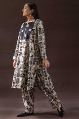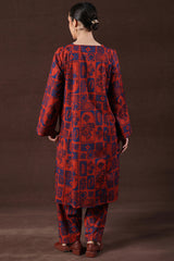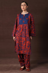 A classic-fit printed shirt with a round neckline adorned with tassel detailing. Paired with a matching printed classic-fit shalwar for a coordinated look.