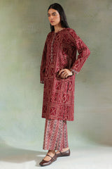 A classic-fit printed shirt with a round neckline and buttoned front placket, featuring side pockets. Paired with printed culottes for an effortlessly chic look.