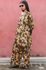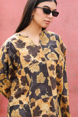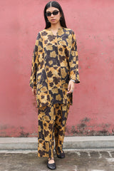 A classic-fit printed shirt with a round neckline and V-slit. Paired with matching printed culottes for a coordinated, effortless look.