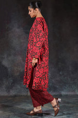 Blooming floral printed classic-fit shirt with a V-neckline and subtle mukaish detailing along the front slit. Paired with classic printed culottes for a graceful, coordinated look.