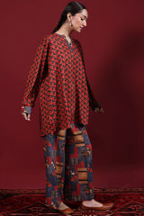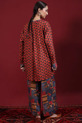 Relaxed-fit printed shirt with an overlap placket and cuffed sleeves. Paired with complementary printed culottes.