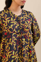 Classic-fit printed shirt with a round neckline and loop buttons along the front slit. Paired with a complementary printed classic-fit shalwar for a timeless look.