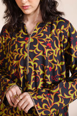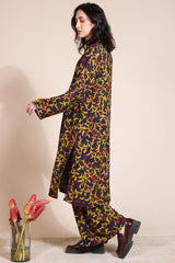 Classic-fit printed shirt adorned with delicate embroidered detailing on the neckline and sleeve hems. Paired with matching printed culottes.